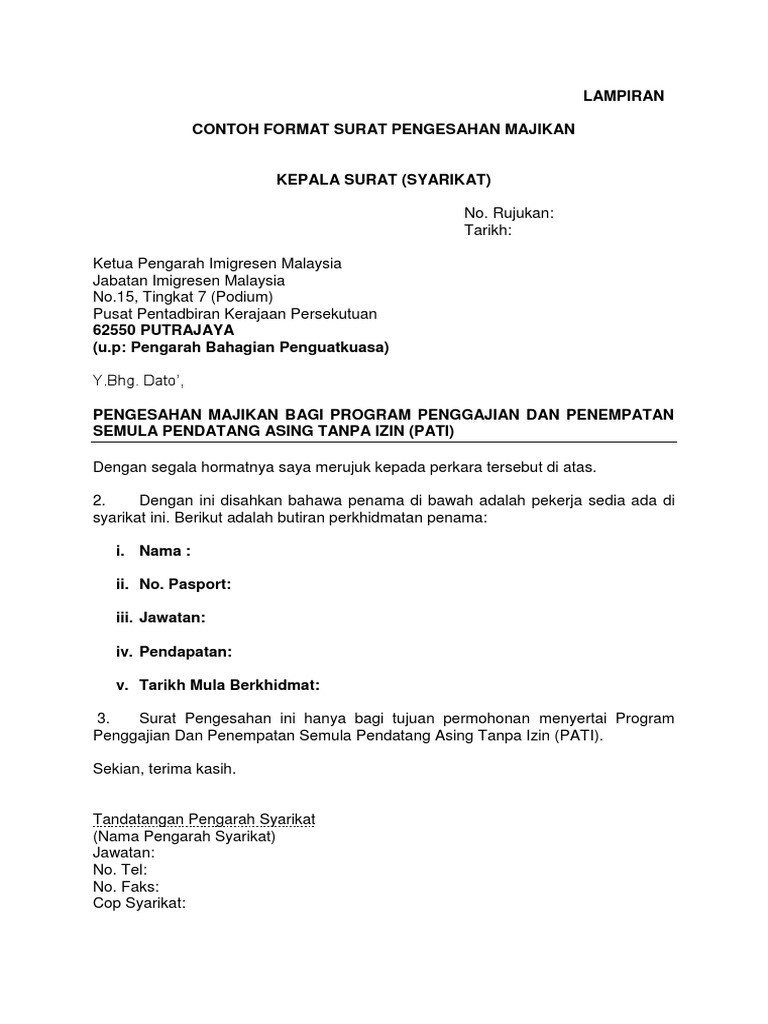 Contoh Surat Pengesahan Majikan Pdf